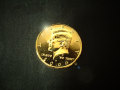 金メッキが施された、金色に輝くハーフダラーコイン(50セント銀貨)です。