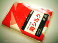 白地に赤で大きく「寿」とプリントされた、おめでたいシルクです。