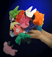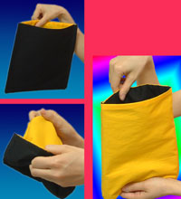 他のタイプと違ってカラフルには変化しませんが、独特の雰囲気を持つマジックです。 最初内側だけ黒く変わり、そのうち両面ともに黒に変わります。 そして最後はゼブラ模様となります。 シックで大人っぽい雰囲気の演技もできますし、「しまうま」ですのでキッズショーにも対応できるという、演じ方により2つの顔を使い分ける事ができるタイプですね。 白と黒で、「しまうま」 という、ストレートな流れも特徴的です。 演技に合わせて他のカラフルなタイプと使い分けていただくと良いかと思います。 |