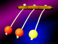 「棒に3つのボールが紐でぶら下がっています。 2つは赤いボールで 1つは黄色いボールです。 今からこの黄色いボールを 魔法で一瞬にして移動させます。」 |