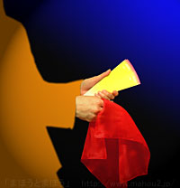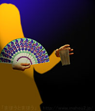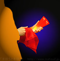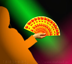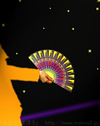 これは「色変わり扇子」「カラーチェンジファン」等と呼ばれるマジシャンの扇子です。 扇状に広がる色彩の変化は美しく、鮮やかで、遠くからでも その変化がはっきり分かります。 今回ご紹介するのは、この用具の良さを最大限に生かせるようにと、「まほうとまほう」が新たにデザインや耐久性にこだわって製作した品で、当然ながら、どこにも売っていない「まほうとまほう」だけの特製品です。 この【夢扇子】、魅力は何と言ってもその変化の美しさですが、それだけではありません。 何の説明もセリフも必要なく、ただ見ているだけで、その現象を理解できる 「分かりやすさ」、 色彩チェンジの瞬間は大変鮮やかで、鏡を見ながらの練習もつい楽しくなり、自分ならではの色々な動きを考えたくなります。 扇子を閉じて再び開くと、いつの間にか別のデザインに変化している! などなど、基本のチェンジだけでも、色々なバリエーションで変化させる事ができます。 また、活用シーンも色々・・・ ・ショーの導入部に軽く演じる。 ・・・などなど、 また、従来の同種用具のデザイン、耐久性に不満があった方にも是非一度、この【夢扇子】をお試しいただきたく思います。 |
