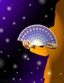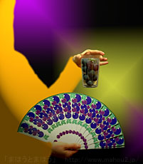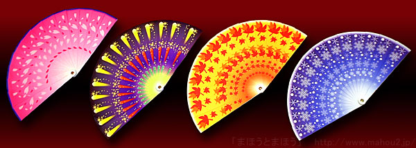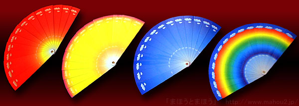 不思議な魔法使いの ”絵扇子” 扇子を開くと、次々と色模様が変化していきます。 それは まるで、クルクルと変わる夢のよう・・・ 美しい色彩のマジックを、どうぞお楽しみ下さい。 |