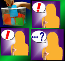 次に、赤い扇子を取り出し開いて見せます。 子ども達に、着ている服などの「黄色」の色パワーを扇子に向かって投げてもらうと・・・扇子は黄色く変化します! |