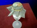 グラスの口に不透明のシートが輪ゴムで留めてあります。 シートの上には100円玉と10円玉が乗っています。 |