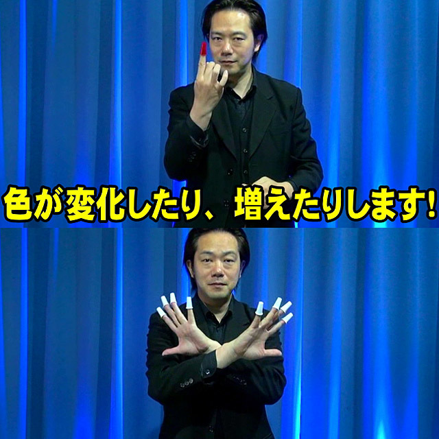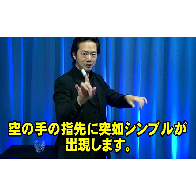 基本技法であるシンブルのパームや出現方法、消失の各バリエーション解説とともに、色変わり、ジャンピングシンブル、8本の出現なども加えたボリュームのある手順となっています。(ラストは8本のシンブルを捨てた後、さらに8本出現するダブルクライマックスです。)